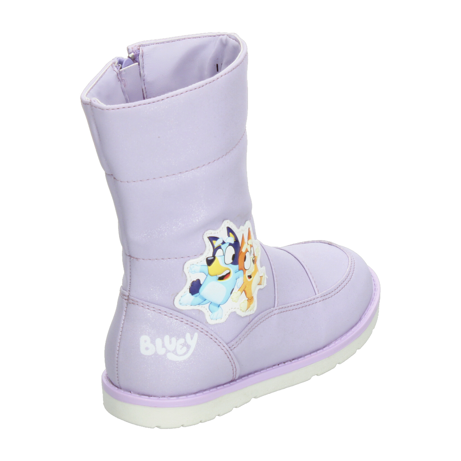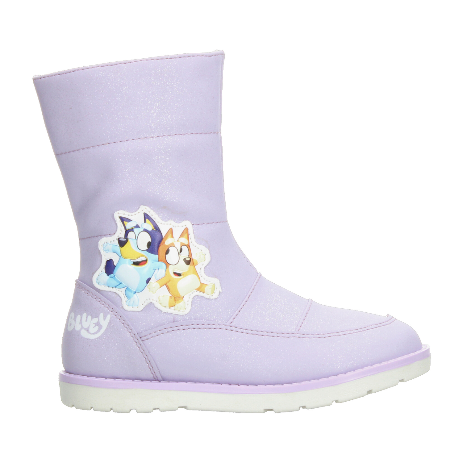 Estas encantadoras botas color lila inspiradas en Bluey son perfectas para acompañar a tu pequeña en sus aventuras diarias. Fabricadas en material sintético con un delicado acabado brillante, combinan estilo y comodidad en cada paso. Su diseño de caña alta brinda mayor protección, mientras que la suela blanca ligera y antiderrapante asegura estabilidad y seguridad. Son fáciles de calzar y combinar con diferentes outfits, ideales para la temporada de frío o para dar un toque divertido y moderno a cualquier look. Una opción práctica, cómoda y llena de ternura.